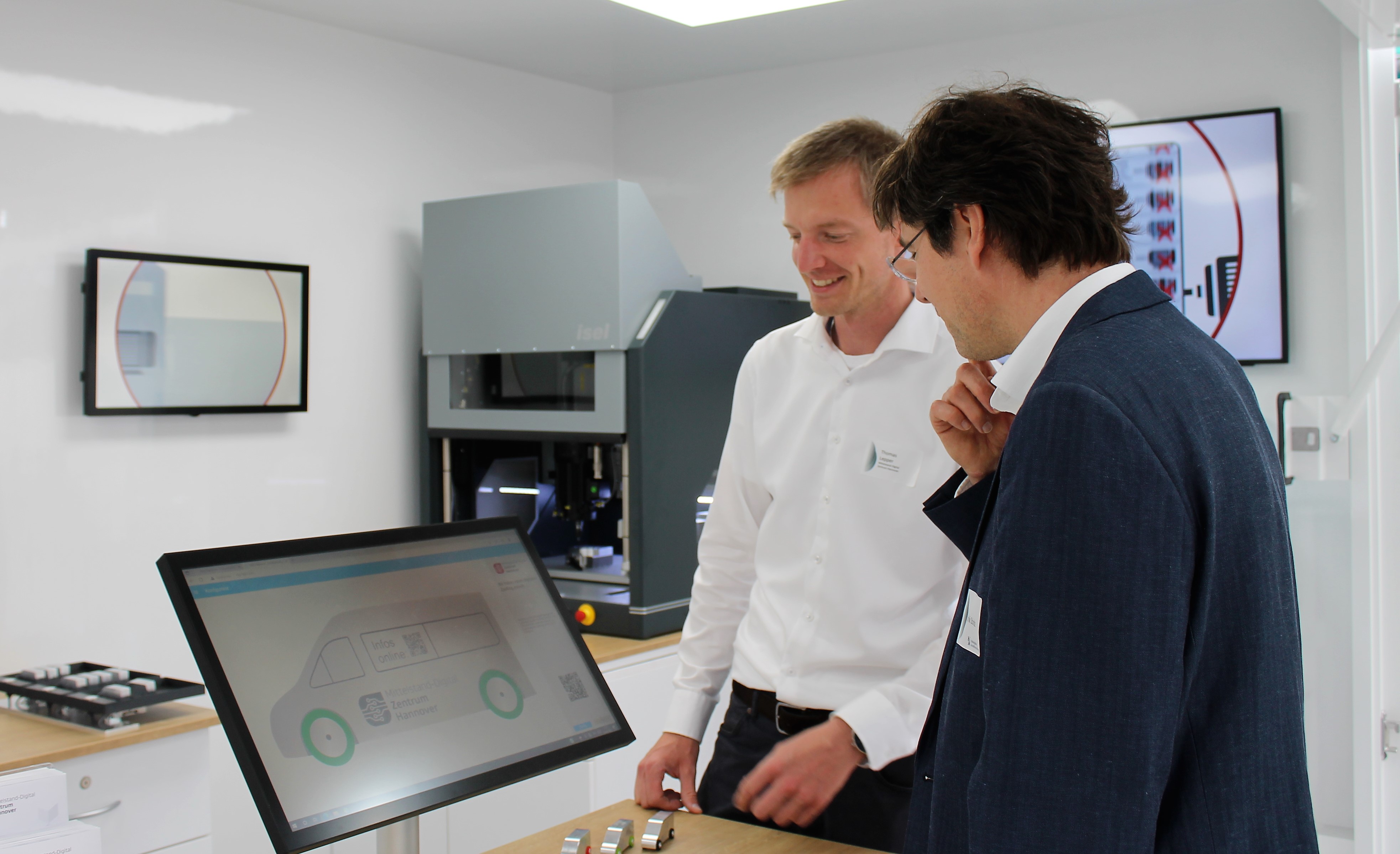 Foto 1: Thomas Lepper (Mittelstand- Digital Zentrum Hannover) im Gespräch mit Endrik Scholz (Prokurist bei hk)